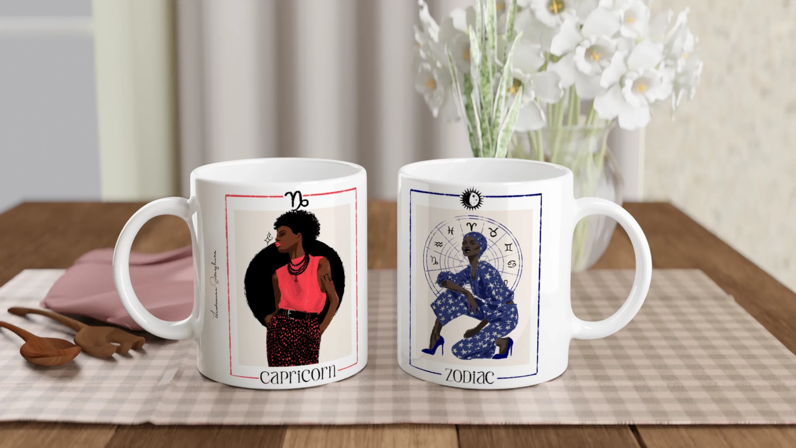 Enjoy your favorite drink with this ceramic mug featuring my fashion illustration inspired by a zodiac sign. Each mug highlights one specific sign, allowing you to proudly show your own astrological symbol, while a complementary illustration brings together all twelve zodiac signs. Both practical and decorative, this mug turns every coffee, tea, or hot chocolate break into a distinctive moment.