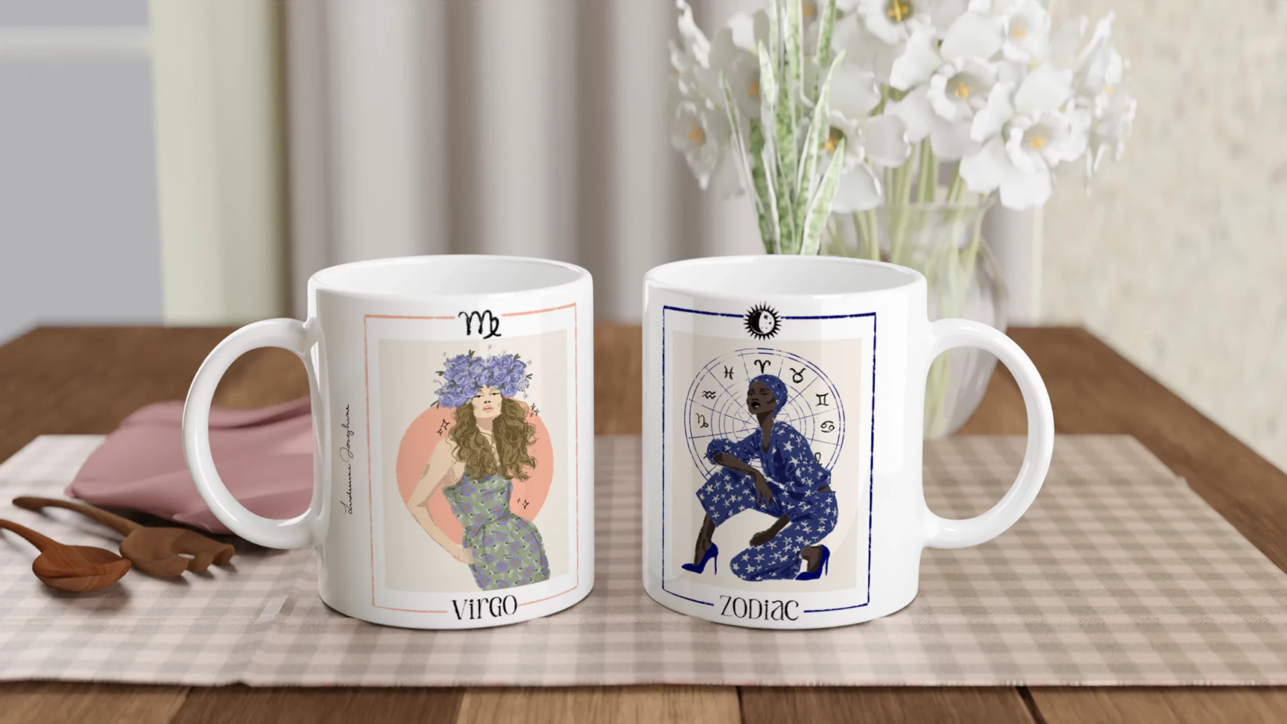 Enjoy your favorite drink with this ceramic mug featuring my fashion illustration inspired by a zodiac sign. Each mug highlights one specific sign, allowing you to proudly show your own astrological symbol, while a complementary illustration brings together all twelve zodiac signs. Both practical and decorative, this mug turns every coffee, tea, or hot chocolate break into a distinctive moment.